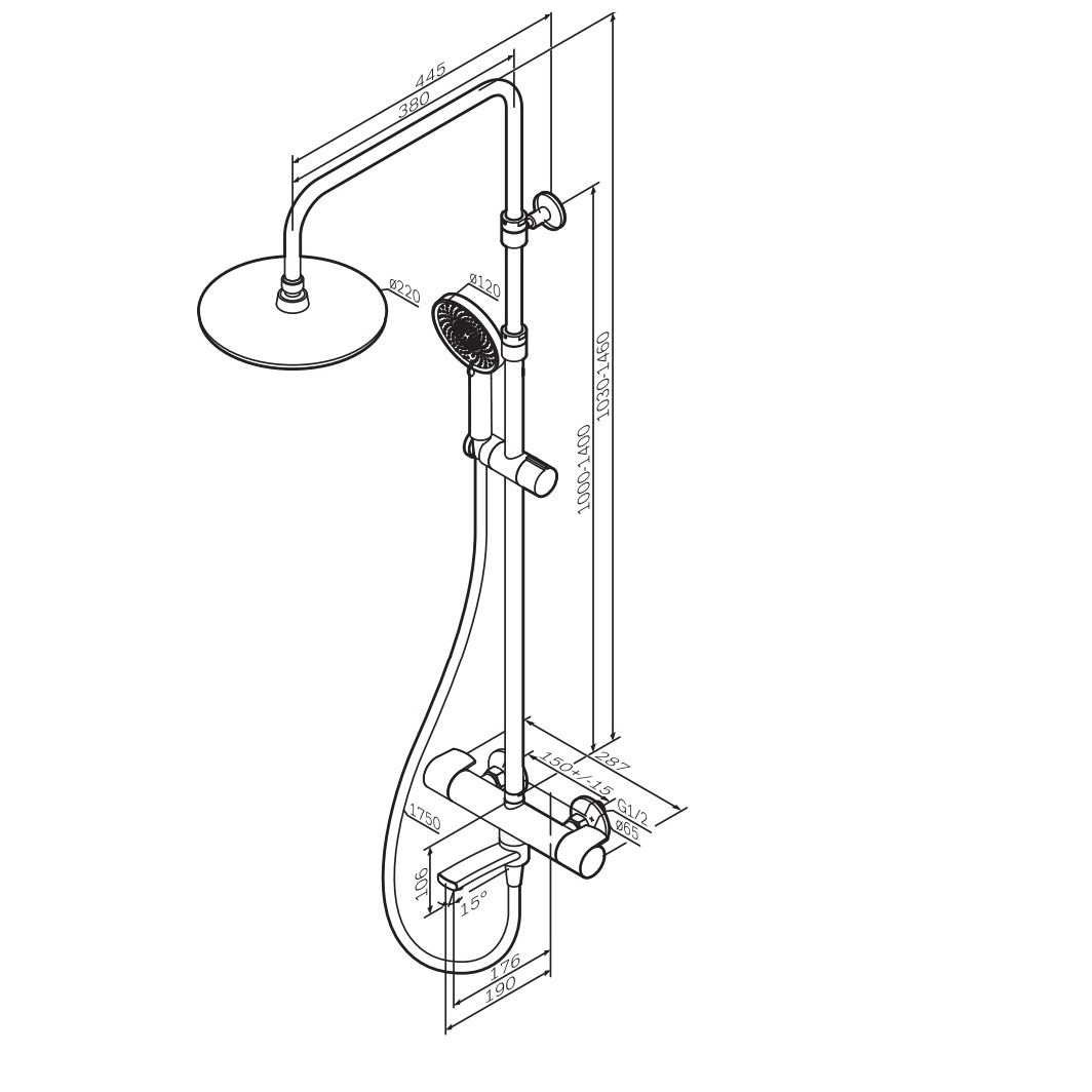 - Размер верхнего душа, см:22