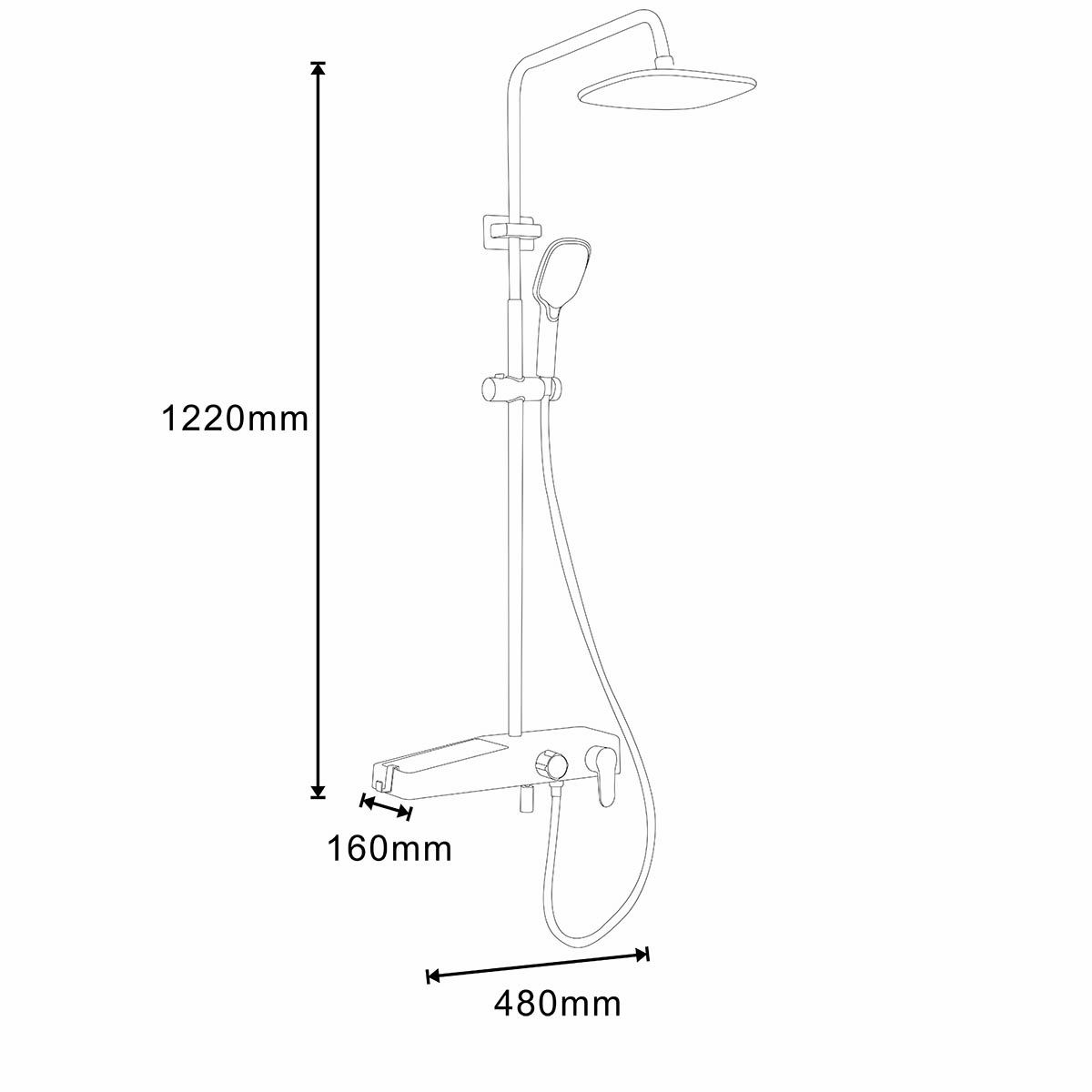 - Размер верхнего душа, см:225
