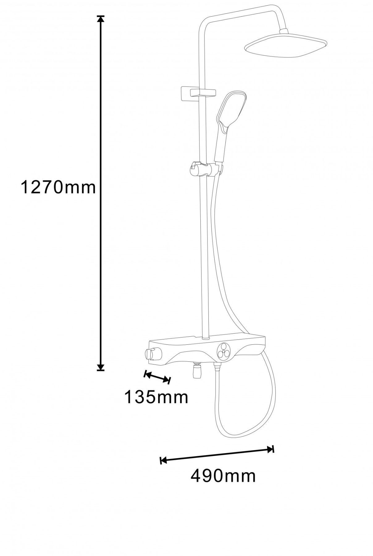 - Размер верхнего душа, см:225