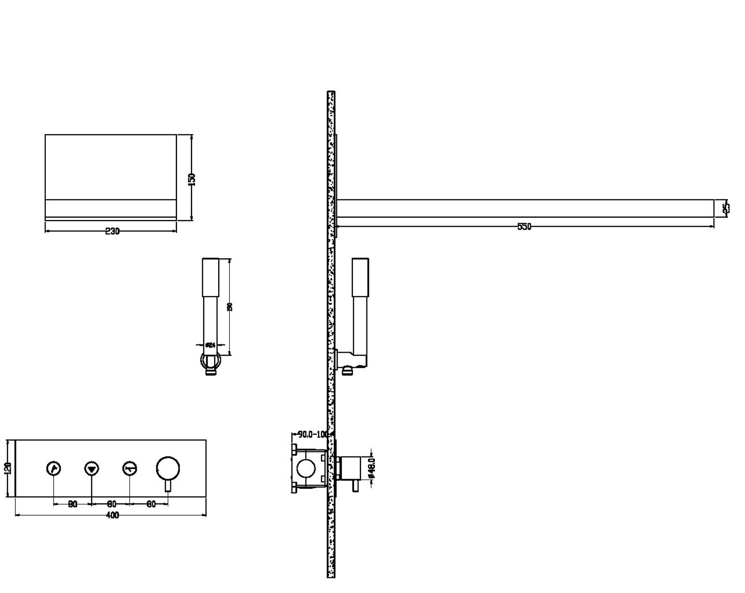 • Размер верхнего душа, см: 55х23
