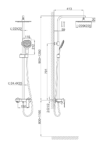 - Размер верхнего душа, см:22