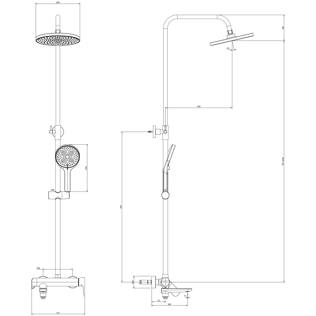- Тип:душевая система со смесителем