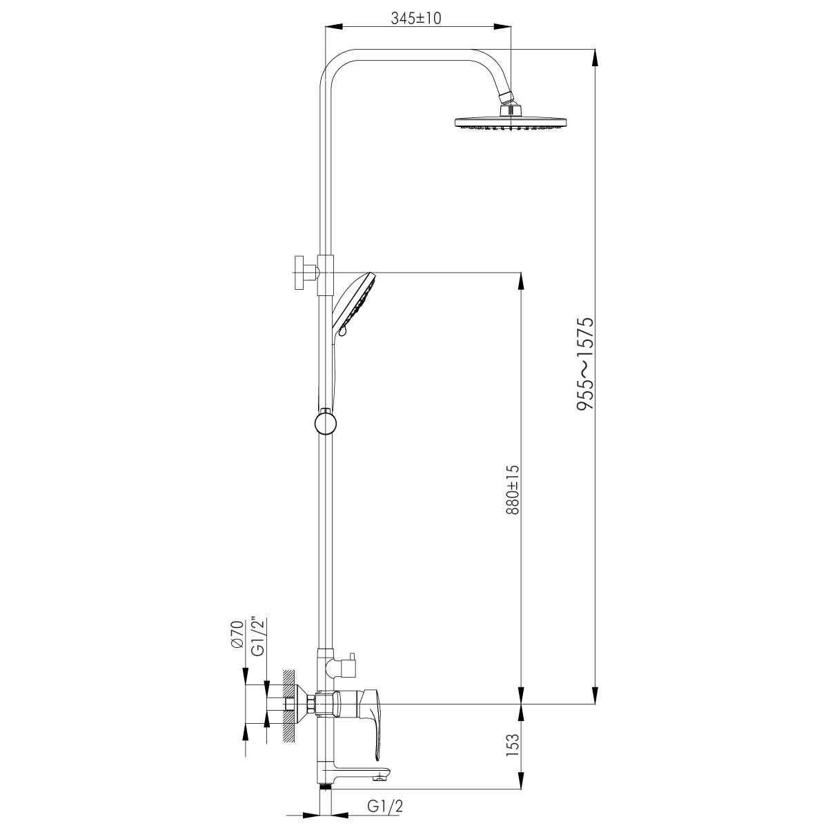 - Размер верхнего душа, см:20