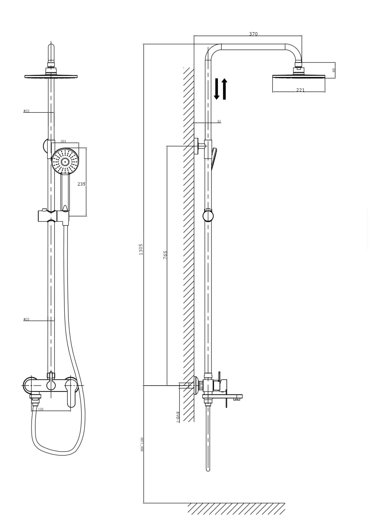 - Размер верхнего душа, см:22.10