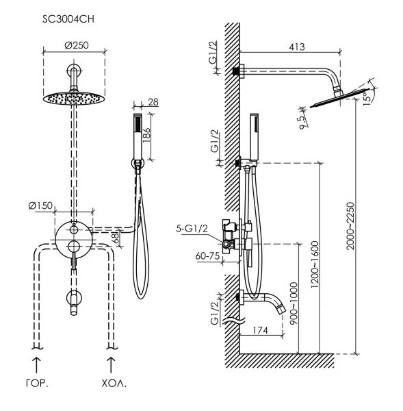 - Размер верхнего душа, см:25