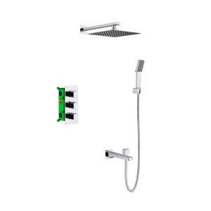 - Душевая система скрытого монтажа, с термостатом с квадратной лейкой (латунь) в стиле модерн