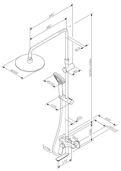 Тотальный дизайн в действии: все детали душевой системы – от пропорций ручного и верхнего душей до рисунка расположения форсунок на лейках – подчинены единой дизайн-концепции коллекции Sunny. Смесители коллекции Sunny отмечены престижной международной наградой Good Design. Стильный дизайн смесителя для ванны/душа с функциональным поворотным изливом легко впишется в современную ванную комнату. Диаметр душевых леек (верхний душ 220 мм и ручной душ 110 мм) позволит ощутить преимущества тропического душа даже в стандартной ванной, тогда как увеличенная длина шланга 1750 мм обеспечит свободу движений во время принятия душа. Продуманные детали для удобства использования: телескопическая поворотная штанга регулируется по высоте в диапазоне от 1030 до 1460 мм, обеспечивая комфорт для людей любого роста. Черный цвет как нельзя лучше подчеркивает изящество силуэтов смесителя и душевой системы, добавляя роскошь интерьеру ванной комнаты.
