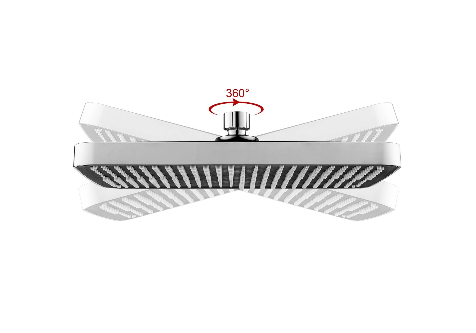 Одной из ключевых особенностей является скрытый излив, который придает системе современный и минималистичный вид, освобождая пространство и создавая ощущение легкости. Регулируемая душевая штанга из нержавеющей стали выдвигается до 1340 мм в высоту, что позволяет легко настроить ее под индивидуальные предпочтения каждого пользователя.