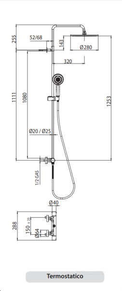 Душевая стойка Bossini Cosmo L10103.030 с термостатом хром купить