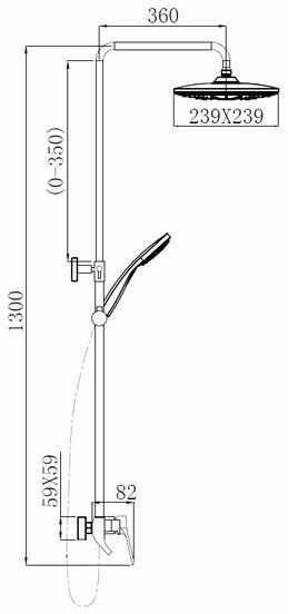- квадратная лейка верхнего душа 239х239 мм, на шаровом шарнире, угол наклона 15 градусов
