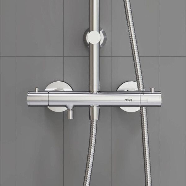 Душевая система Dorff New plus D0710500. Выгода в комплекте! Душевая система и смеситель для ванны и душа c термостатом по привлекательной цене. Душевая система Futura с тропическим душем, ручным душем с 3 функциями и длинным шлангом в 1500 мм - просто находка в своем сегменте. А стойки возможностью регулировки по высоте и шланги с защитой от перекручивания станут приятным бонусом для тех, кто ценит эргономичность и функциональность.Термостат душевых систем в элегантных современных размерах предотвратит от ожогов собрал в себе лучшие немецкие качества: стильный дизайн, компактные размеры, европейское качество, прочность и долговечность.Бренд Dorff