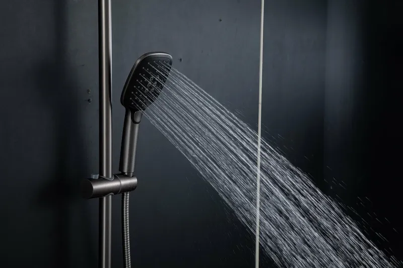 Современная душевая система серии G2448-9 GAPPO (гаппо) выполнена из латуни в цвете оружейная сталь, имеет глянцевую поверхность