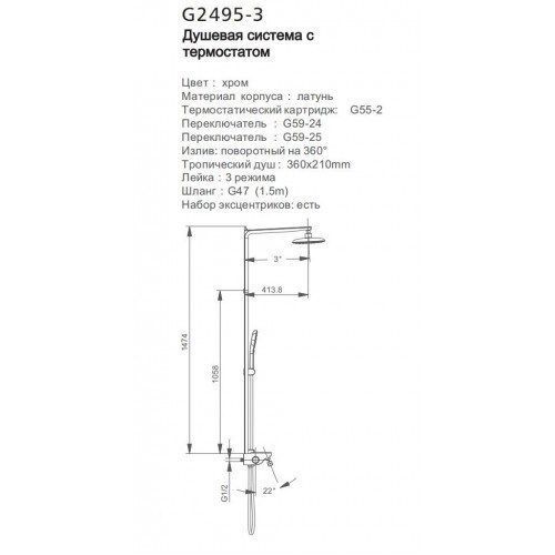 Душевая стойка Gappo G2495-3 с термостатом хром купить