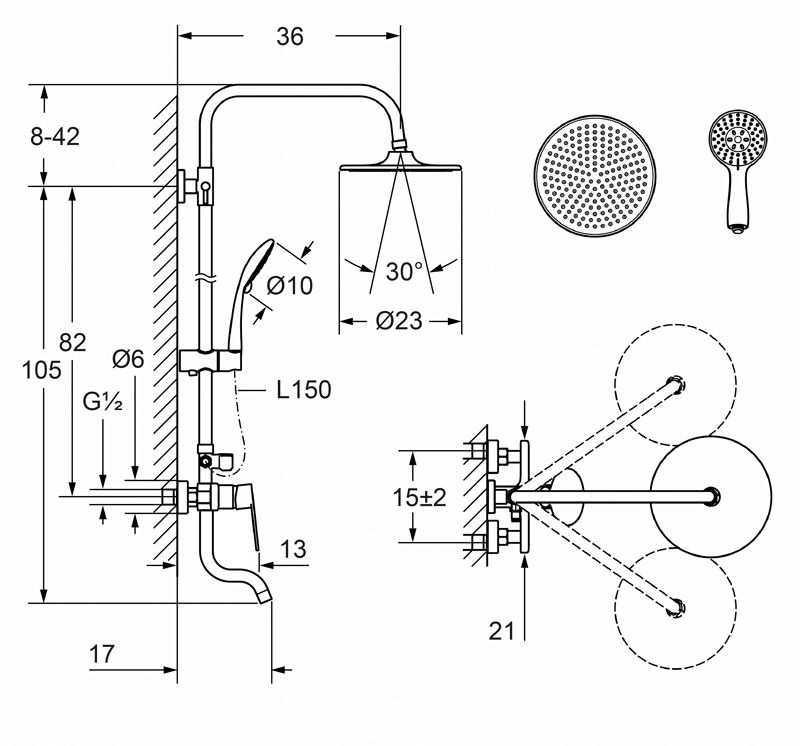 ручной душ, душевой шланг, s-образные эксцентрики, набор прокладок.
