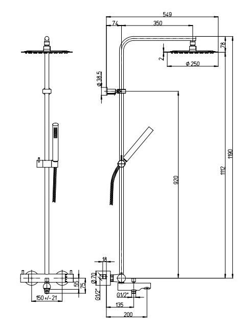 - Размер верхнего душа, см:25