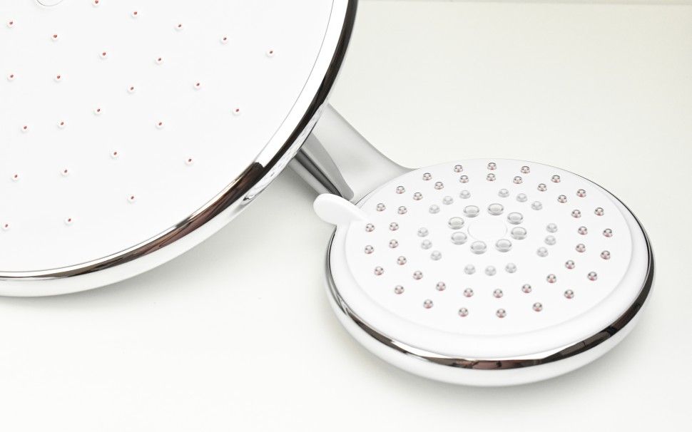 Душевая система RS White от итальянского бренда PAINI обладает инновационной системой самоочистки верхнего душа и ручной лейки. Специальные форсунки очищают отверстия в лейке при переключении режима, а верхний душ очищается, как только включается напор воды. Высота крепления для лейки регулируется так, чтобы было удобно всей семье. Хромовое покрытие, защищающее от повреждений и визуально расширяющее пространство, стальной корпус, качественные комплектующие от европейского производителя. Гармоничный дизайн, позволяющий сочетать душевую систему с любым смесителем для душа или ванны. Лейка с 5 режимами работы. В комплекте удобная мыльница: крепится прямо на штангу душевой системы, что увеличивает количество мест для важных мелочей.Ежедневный комфортКрепление для лейки регулируется по росту с помощью перемещения вдоль штанги.Система самоочистки верхнего душа и лейки. Никаких известковых отложений на форсунках.Специальное соединение позволяет лейке вращаться автономно вокруг своей оси, предотвращает перегибания шланга и увеличивает срок его эксплуатации.диаметр тропического душа (верхнего рассеивателя) – 240 мм, поток воды покрывает все тело.Европейское качествоГарантия производителя – 2 года. Сделано в Италии.Прочное покрытиеКорпус с хромовым покрытием, выполненным по специальной технологии фабрики «ПАИНИ» CROMO3 (никелирование и хромирование) устойчив к царапинам и налету.Легкая уборкаДля ухода за душевой системой достаточно мыльной губки и тряпочки.