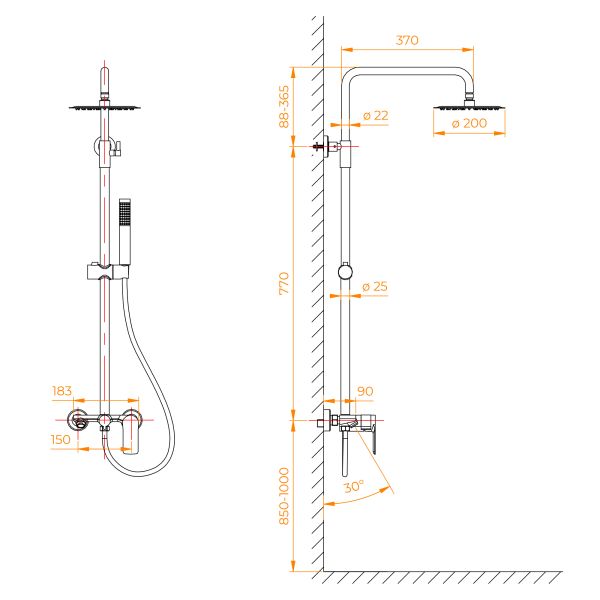 - Головной душ выполнен из нержавеющей стали AISI 304 оснащён со шарнирным креплением, что позволяет выбрать необходимый угол направления воды;