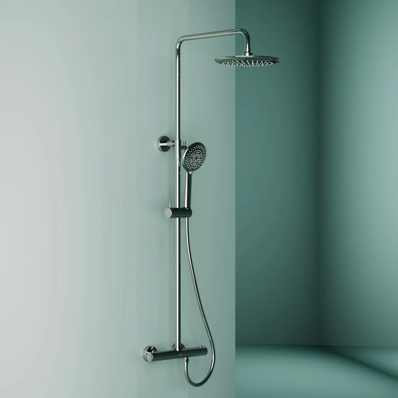 Душевая стойка SANCOS Game для душа с термостатическим смесителем, верхним, ручным душем и шлангом в комплекте, цвет хром, арт. SC3002CH