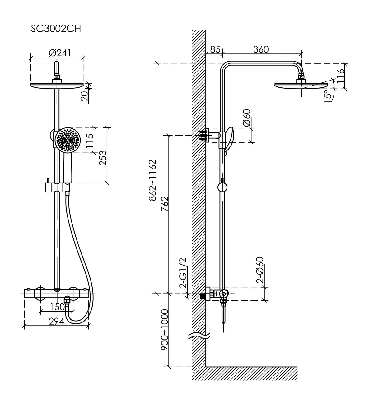 - Размер верхнего душа, см:24