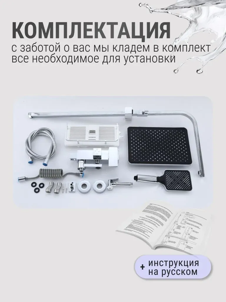 Душевой комплект содержит все необходимое для монтажа. Кроме того, наша душевая стойка хром имеет простой и быстрый монтаж, благодаря чему вы сможете установить ее самостоятельно без привлечения специалистов. Это позволит сэкономить время и деньги, а также получить удовольствие от процесса создания своего уютного уголка в ванной комнате.