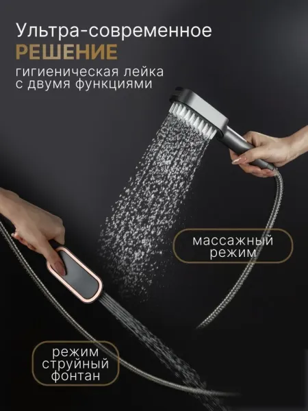 Душевой гарнитур с тропическим и гигиеническим душем Vexorus имеет возможность установки на любую поверхность. Благодаря этому вы сможете использовать ее как в ванных комнатах, так и на даче. Матовый черный цвет придает изделию особую элегантность и шарм.