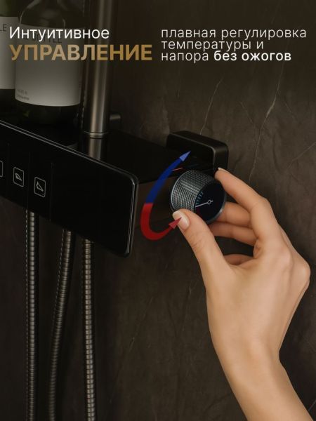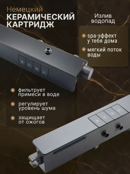 Душевая система с тропическим душем Vexorus - это система, которая превратит вашу ванную комнату в настоящий уголок роскоши и комфорта. Изделие выполнено в графитовом цвете, что позволяет гармонично его использовать в современном интерьере.