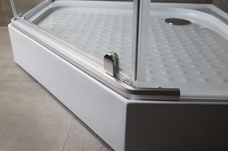 • Дверные ручки выполнены из качественных материалов. Обладают важными качествами: удобством в использовании, элегантностью и долговечностью. • Распашная система открывания дверей. Нижнеопорные петли исключают проседание дверей в процессе эксплуатации. • Алюминиевый профиль обладает высокими антикоррозийными свойствами. Матовая поверхность профиля придает ограждениям привлекательный внешний вид. • Магнитная лента плотно фиксирует стеклянные двери в закрытом положении, не давая попадать воде на пол и стены. • Силиконовый профиль служит для уплотнения зазора между полом и стеклом. ПОДДОН НЕ ВХОДИТ В СТАНДАРТНУЮ КОМПЛЕКТАЦИЮ ИЗДЕЛИЯ И ПРИОБРЕТАЕТСЯ ОТДЕЛЬНО. РАЗМЕР И ФОРМА ПОДДОНА ДОЛЖНЫ СООТВЕТСТВОВАТЬ РАЗМЕРУ И ФОРМЕ ОГРАЖДЕНИЯ.