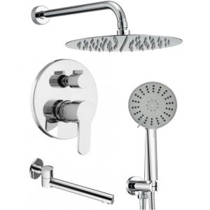 В правильно выполненном дизайне ванной комнаты нет ни одной лишней детали. Душевая система- это не только высококачественные современные технологии, это стильный дизайн и возможность добавить интересный акцент. Например, выбрав элегантный Душевой комплект со смесителем, на 3 режима, Душ для тех, кто ценит каждый момент своей жизни. Комплектация: ? Излив поворотный латунь 24 см. ? Верхняя лейка нержавеющая сталь размер 25 см. ? Длинна верхнего кронштейна 40 см. ? Шланг 150 см. ? Лейка ручная ABC пластик на 4 режима ? Встраиваемый смеситель, материал латунь ? Глубина его погружения в стену 8 см.