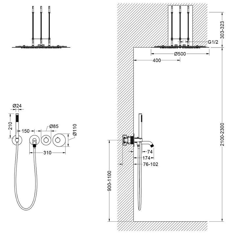 Размер верхнего душа: Ø 500 мм