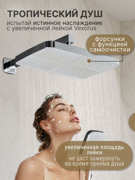 Душевые системы с тропическим душем и смесителем Vexorus изготовлены из высококачественных материалов, что гарантирует ее долговечность и надежность. Элегантный и современный дизайн дополнит любой интерьер, добавив в него изысканности и стиля.