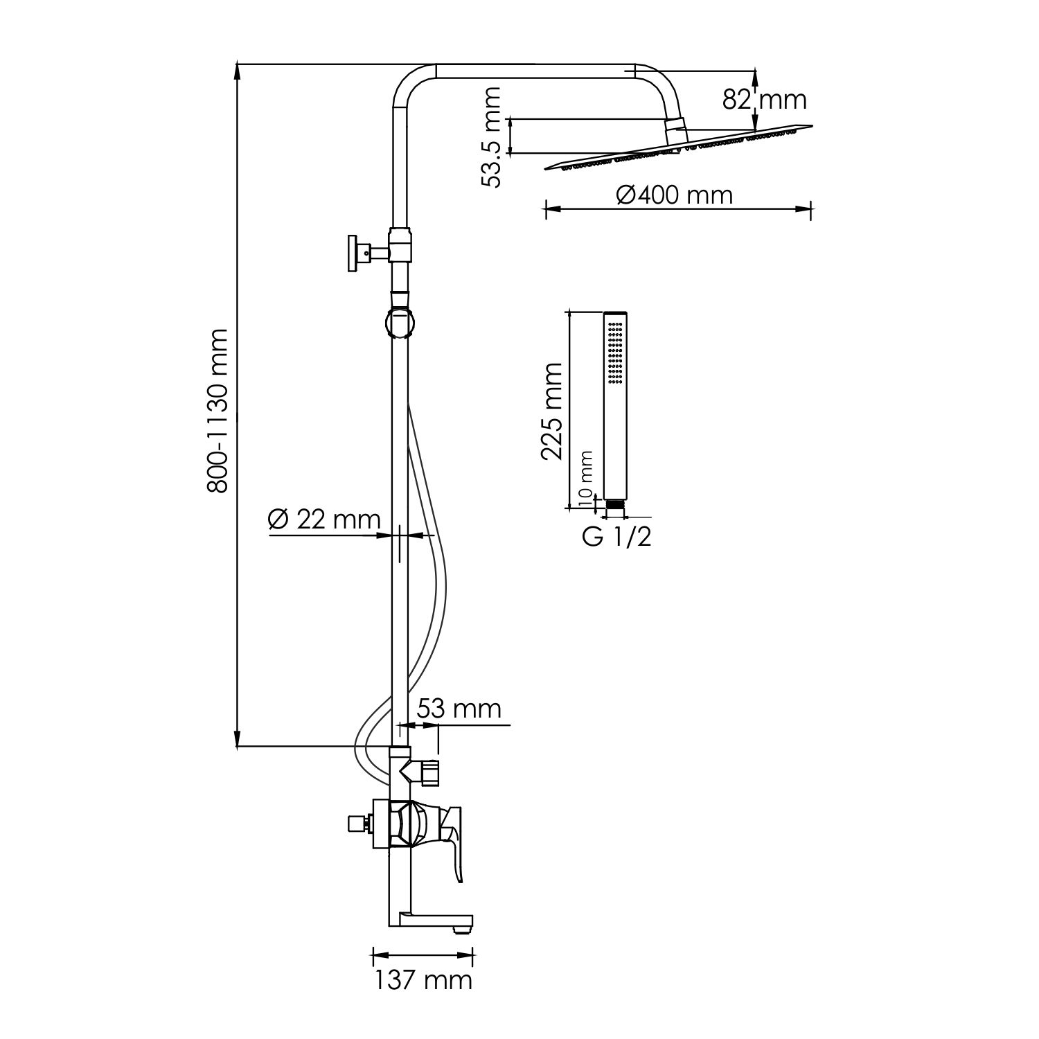 Душевой комплект WasserKRAFT A166.117.137.087.CH хромДушевой комплект с насадкой «Ливневый дождь»Душевая насадка