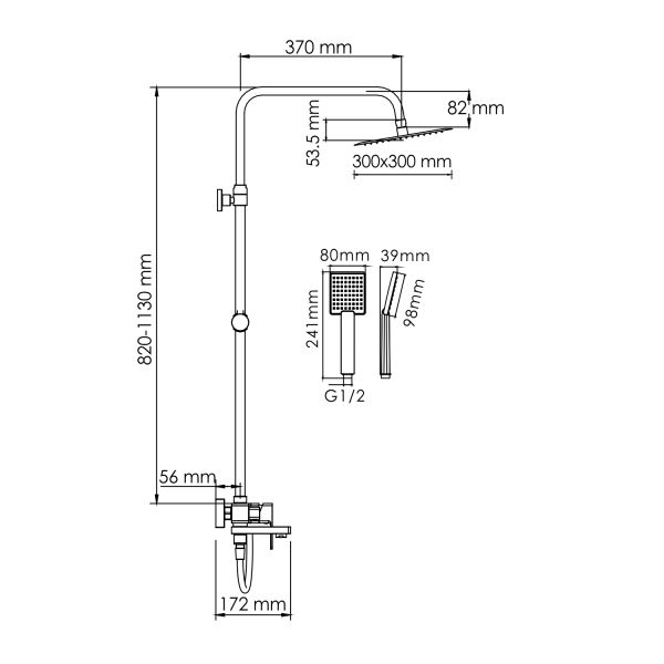 Стойка для душа, Ø 22 мм регулируемая по высоте