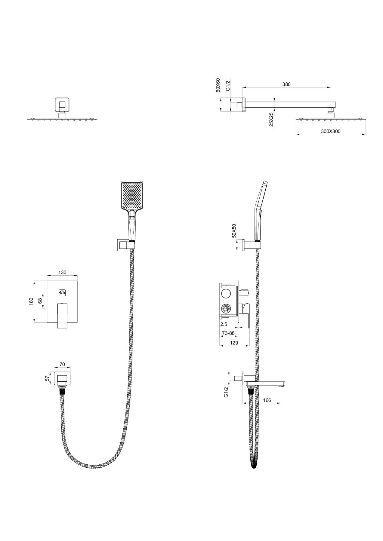 Душевая система встраиваемая WONZON & WOGHAND CUBE, Черный матовый (WW-88939016-MB)