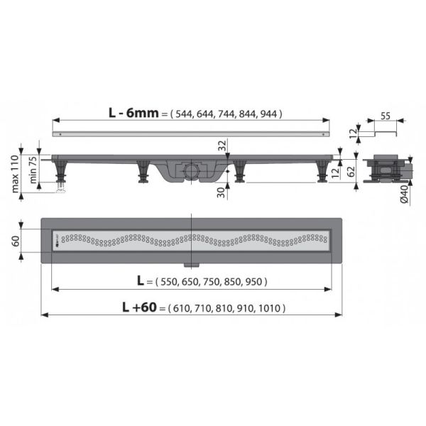 - Диаметр сливной трубы 40 мм