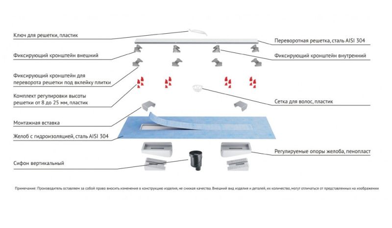 Душевой желоб Berges C1 Norma это современное функциональное решение для оборудования водоотвода во внутренних помещениях. Выполнен из высококачественной нержавеющей стали AISI 304, что обеспечивает жесткую фиксацию в основании пола и длительное использование.Изоляционная мембрана, интегрированная в стальной корпус, гарантирует непроницаемость и совместима со всеми изоляционными материалами.Усовершенствованная система настройки высоты изделия позволяет выполнить легкую регулировку под заданную толщину покрытия, с минимальной высотой монтажа (заливки) - 65мм. Поворотный сифон с гидрозатвором имеет высокую пропускную способность 48 л/мин и оригинальную самопромывную конструкцию.Съемная сетка для волос (грязеуловитель) предотвращает попадание мусора в сифон и позволяет легко проводить очистку желоба. Благодаря возможности переворота решетки и вклейки плитки, вы ощутите цельность пространства в вашей ванной комнате и душевой.