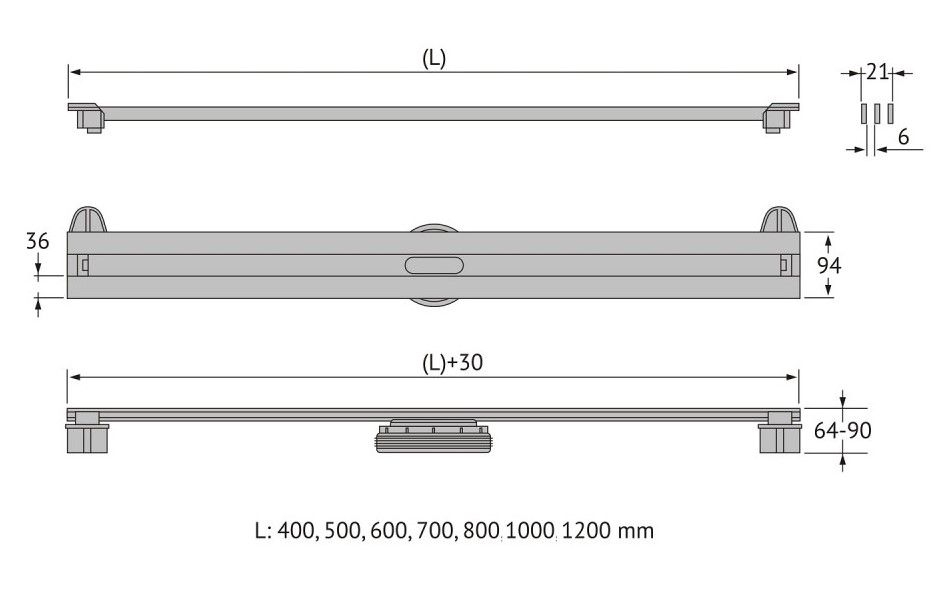Решетка и декоративные заглушки, нержавеющая сталь AISI 304Комплект регулировки решетки по высоте от 8 до 30ммСетка для волос, пластикКомплект гидроизоляцииЖелоб водосток, нержавеющая сталь AISI 304Монтажная заглушка, пенопластРегулируемые по высоте ножки, пластикСамопромывной S-образный сифон PPГоризонтальный выпуск D50 H60, пропускная способность 42л/мин, монтаж 360°Монтажный ключ, пластик