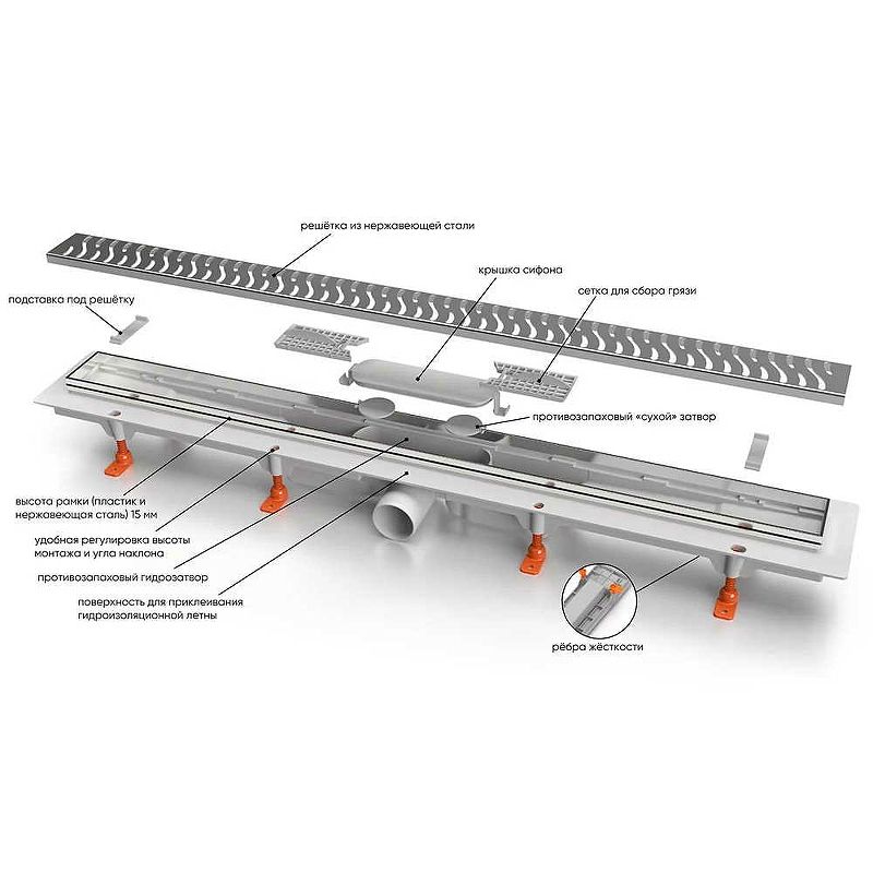 Душевой лоток Veconi Medium 950 V950M с решеткой Хром глянцевыйХарактеристики:Цвет решетки: хром глянцевый.