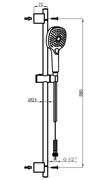 - Размер верхнего душа, см:225