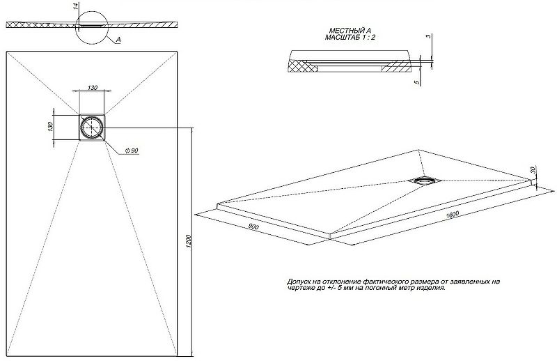Размеры (ШхВхД):1600х30х900 мм.