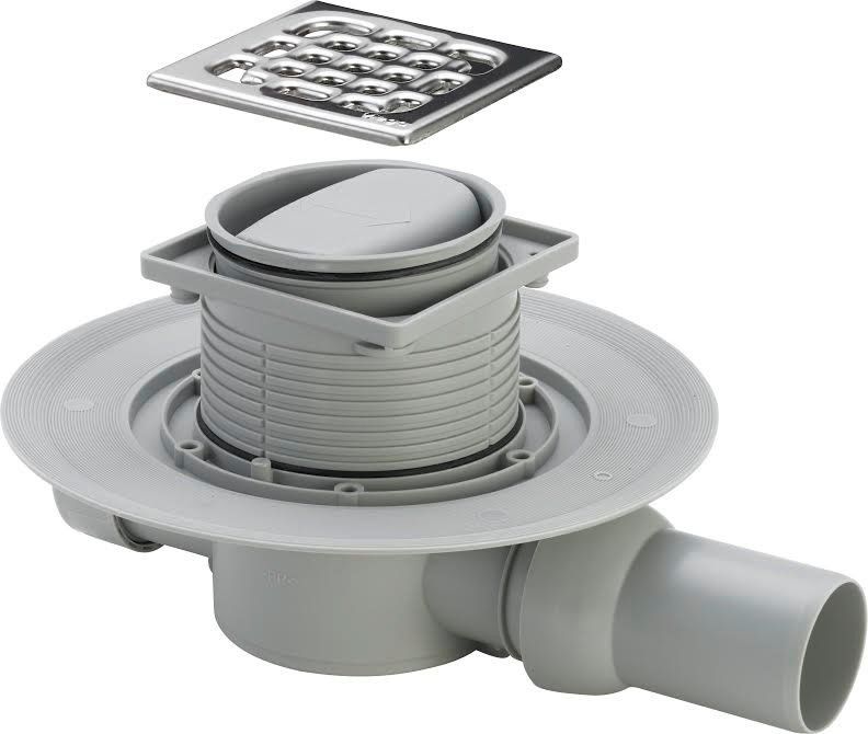 Трап с изоляц. фланцем,"сухим" затвором,решеткой из нерж. 100х100мм (рамка пласт)пропускная способность 0,40 л/с