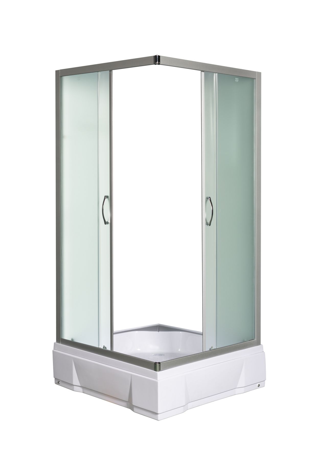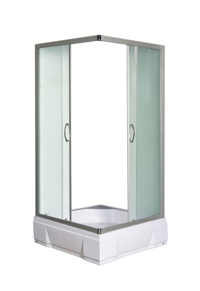 Размеры и комплектации:без поддона 80*80*185с поддоном 80*80*211Матовое стеклоДушевое ограждение для ванной комнаты квадратное с боковым регулировочным профилем и саморегулирующимися металическами, хромированными, двойными роликами.