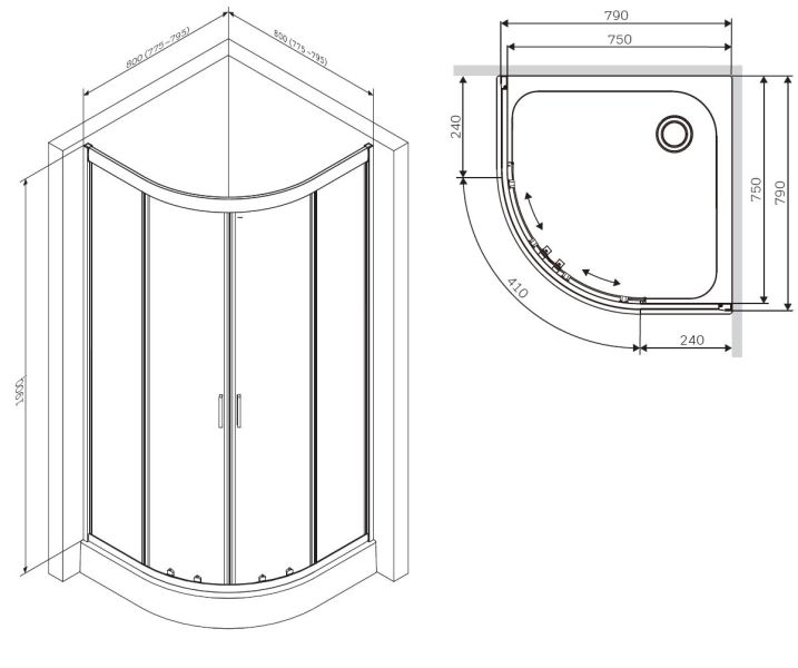 · Высота ограждения без поддона 1900 мм.