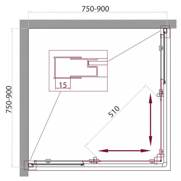 Душевой уголок прямоугольный, хром BelBagno UNIQUE-A-2-75/90-C-Cr купить