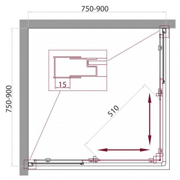 Душевой уголок прямоугольный, хром BelBagno UNIQUE-A-2-75/90-P-Cr купить