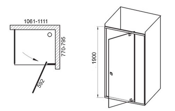 1) Душевая дверь в нишу Ravak PDOP2-110 профиль сатин 03GD0U00Z12) Душевая перегородка Ravak PPS-80 Transparent, профиль сатин 90G40U00Z1