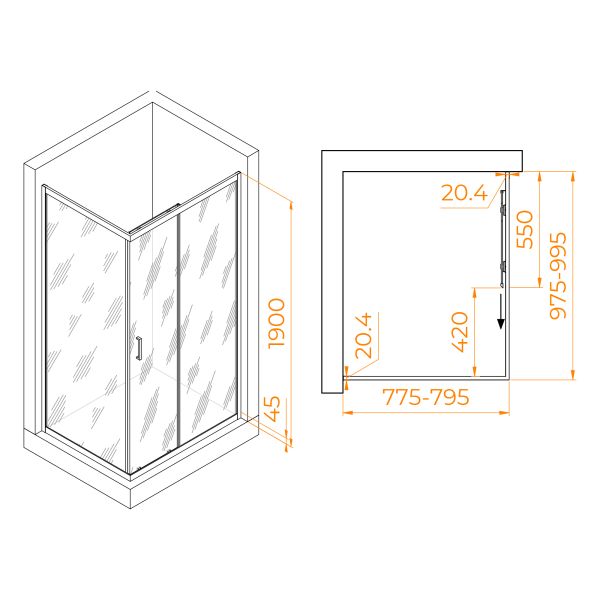 Душевой уголок RGW PA-245 410824580-11 80x100см хром купить