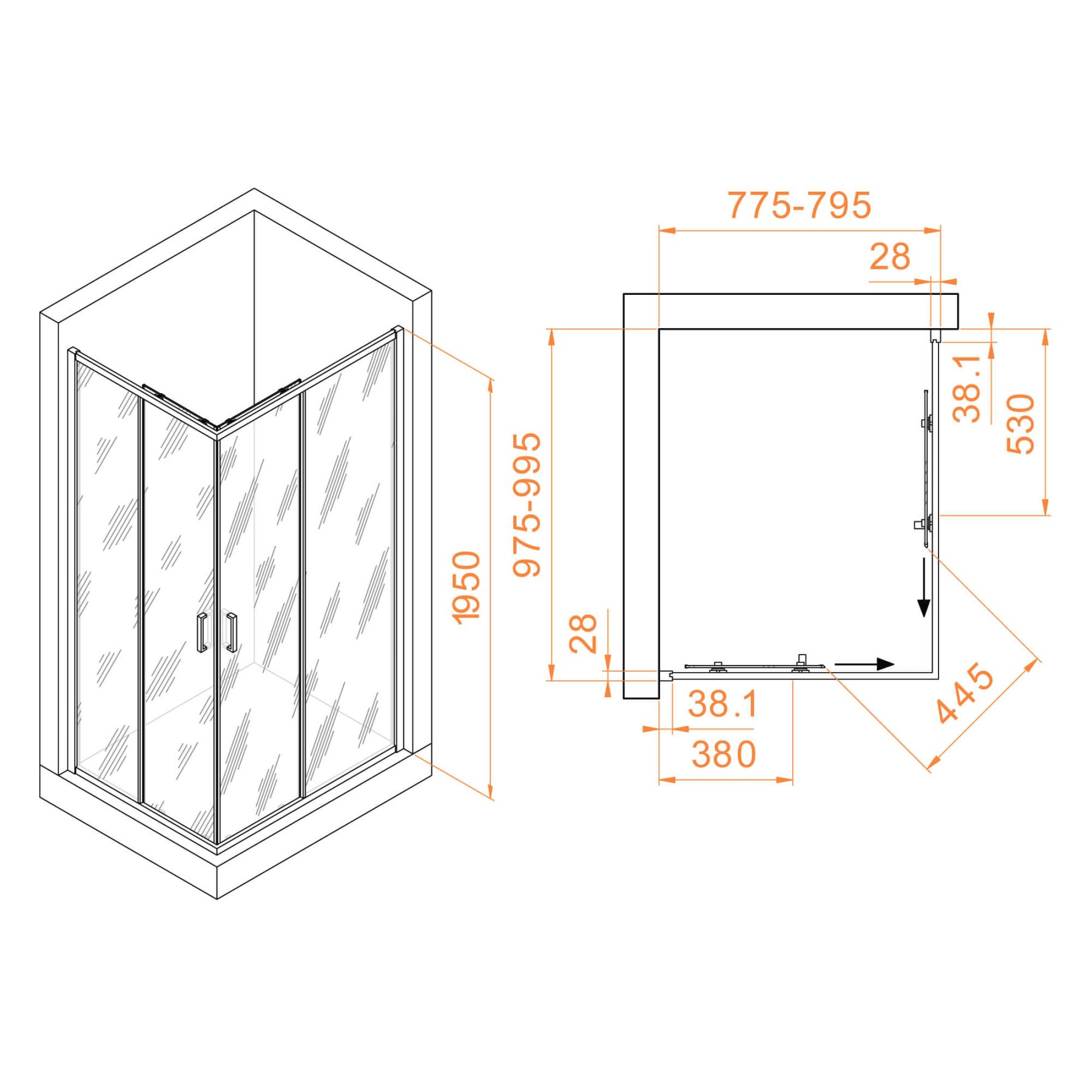 Душевой уголок RGW PA-246B 030824680-14 800x1000Душевой уголок RGW PA-246В — это качественный продукт, который станет незаменимым элементом в вашей ванной комнате. Этот душевой уголок имеет прямоугольную форму и прозрачное стекло толщиной 6 мм. В комплекте с душевым уголком идут двойные регулируемые ролики, которые обеспечивают плавное и бесшумное открытие и закрытие дверей.Высота душевого угла составляет 1950 мм, что позволит вам комфортно принимать душ, даже если вы высокого роста. Конструкция дверей раздвижная, что экономит место в ванной комнате. Этот душевой уголок также имеет регулируемый профиль, что позволяет легко настроить его на любые условия установки.