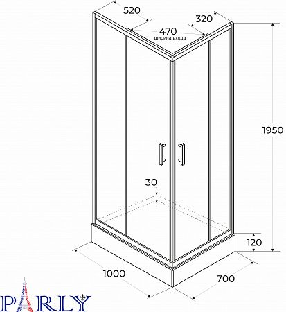 Душевой уголок с поддоном PARLY QZ71B N (70х100х195) купить