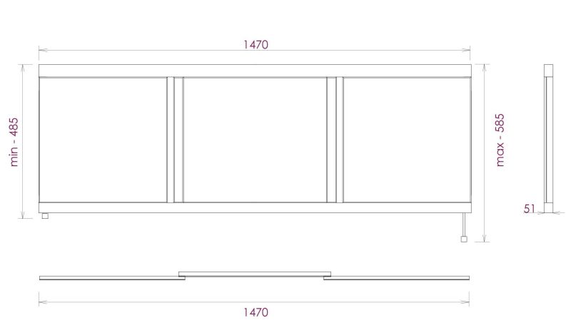 Ножки позволяют регулировать экран по высоте от 52 до 60 см, благодаря этому экран является универсальным и впишется в интерьер любой ванной комнаты.
