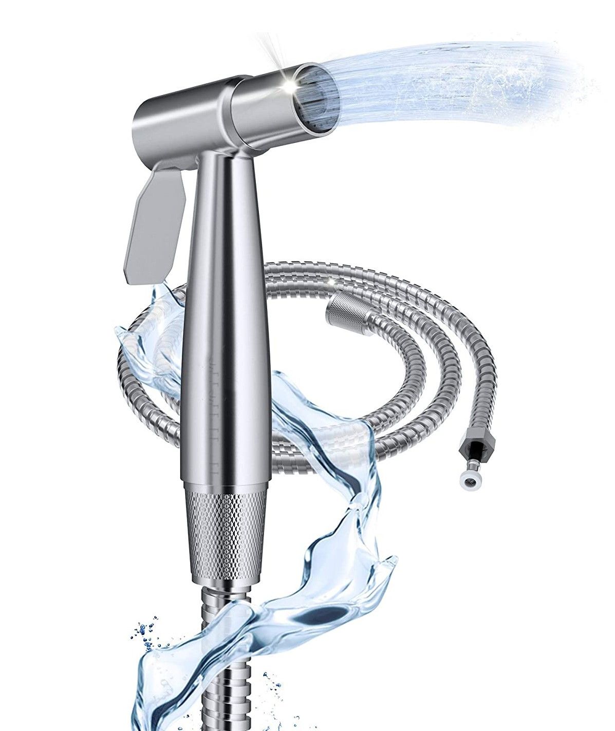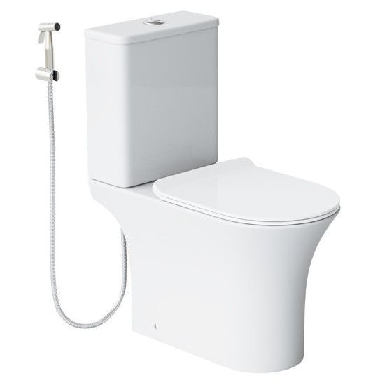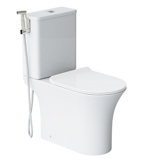 Гигиенический набор в цвете хром: гигиенический душ d25 мм (1 режим) на гибком шланге 120 см с защитой от перекручивания. В комплекте настенный держатель и держатель на край бочка.
